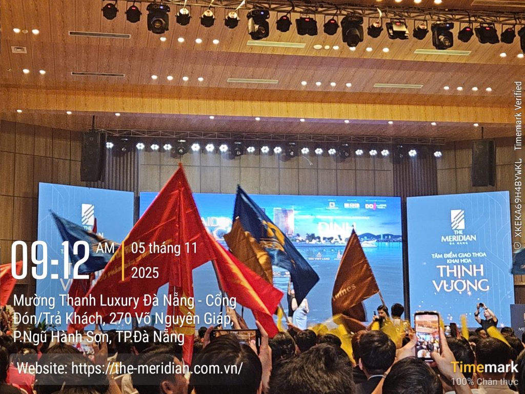 Đà Nẵng, 05/11/2025 – Vào lúc 9:00 sáng ngày 05/11/2025, tại tầng 4 khách sạn Mường Thanh Luxury Đà Nẵng (270 Võ Nguyên Giáp, phường Phước Mỹ, quận Sơn Trà), sự kiện kick-off chính thức mở bán Tòa A – The Meridian Đà Nẵng đã diễn ra thành công vượt mong đợi với hơn 500 khách mời tham dự. Đây không chỉ là buổi lễ giới thiệu dự án căn hộ cao cấp mà còn là sự kiện bất động sản lớn nhất Đà Nẵng tháng 11/2025, đánh dấu bước ngoặt quan trọng trong hành trình kiến tạo “biểu tượng sống thịnh vượng” bên dòng sông Hàn thơ mộng.